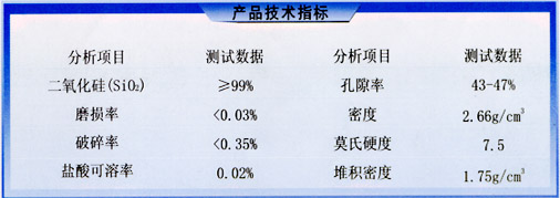 石英砂滤料是采用天然石英矿为原料,经破碎,水洗精筛等加工而成,目前是水处理行业中使用广泛、量大的净水材料,无杂质,抗压耐磨,机械强度高,化学性能稳定,截污能力强,效益高、使用周期长,适用于单层、双层过滤池、过滤器和离子交换器中,各项指标均达到(CJ/T43-1999)标准。